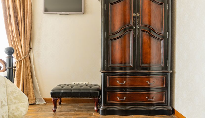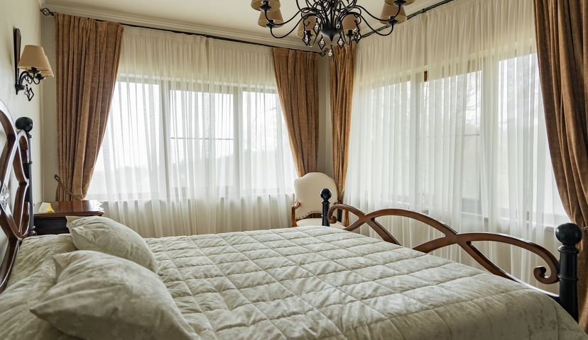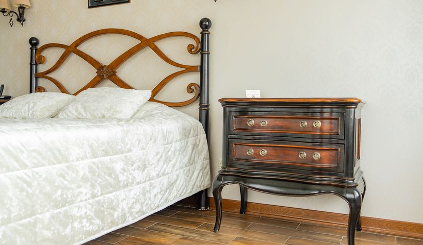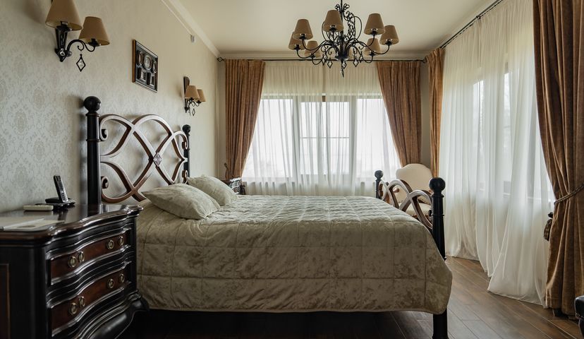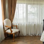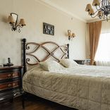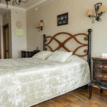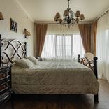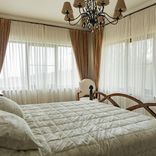 Интерьер выполнен в европейском стиле, в темных, пастельных тонах и укомплектован эксклюзивной мебелью из натуральных пород дерева.